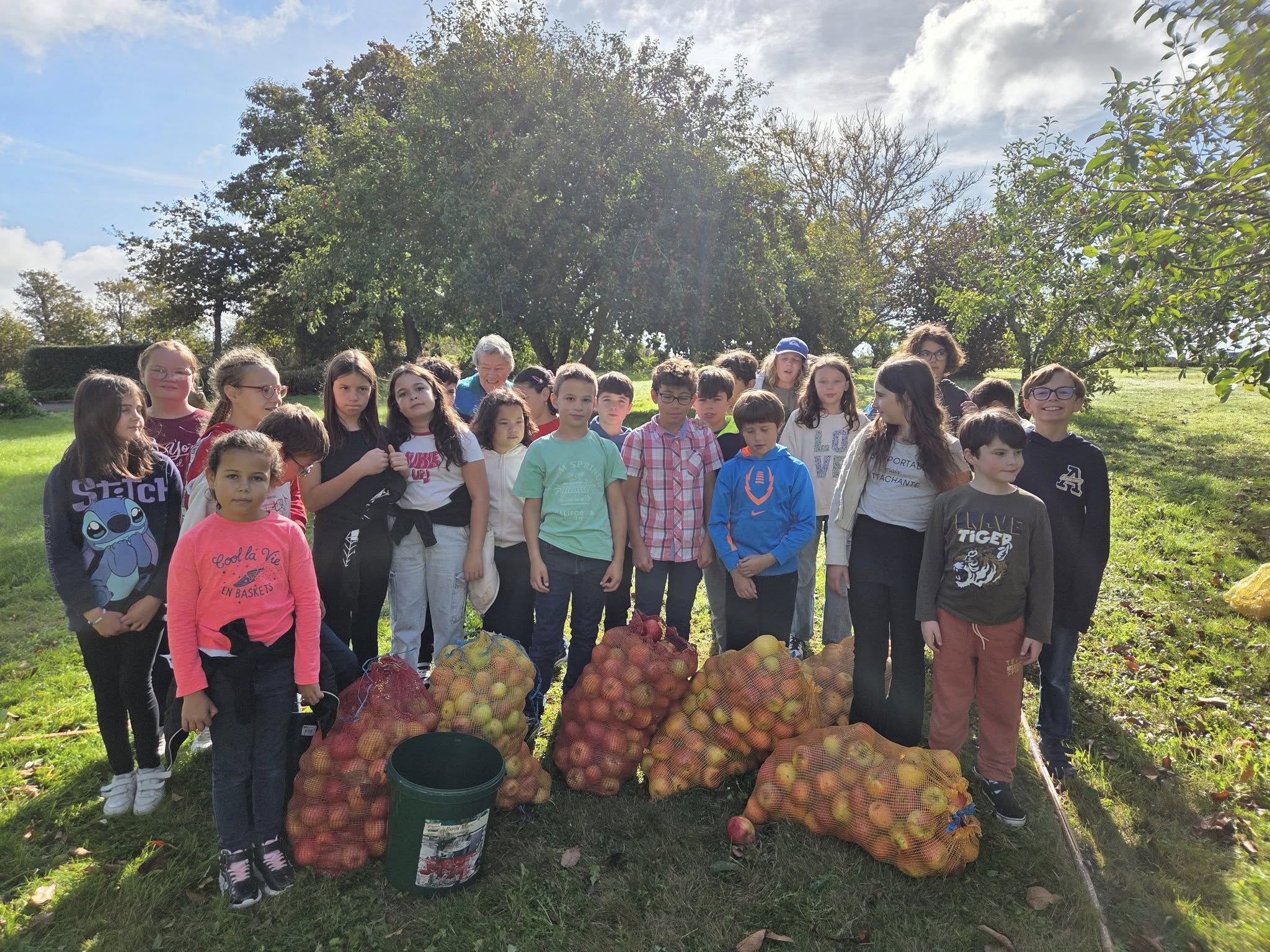 Pour le projet Jus de Pommes organisé par l’ Apel La Lorette – Pouldreuzic , les élèves de chaque classe vont mettre la main à la pate et sortir ramasser des pommes ! Les CM ont commencé et ont fait une belle récolte ! Les élèves de maternelle sont allés ramasser des pommes dans notre jardin derrière l’école, une belle récolte pour nos petits travailleurs ! Les CP CE1 CE2 se sont rendus dans les jardins alentours pour apporter leur contribution au projet !