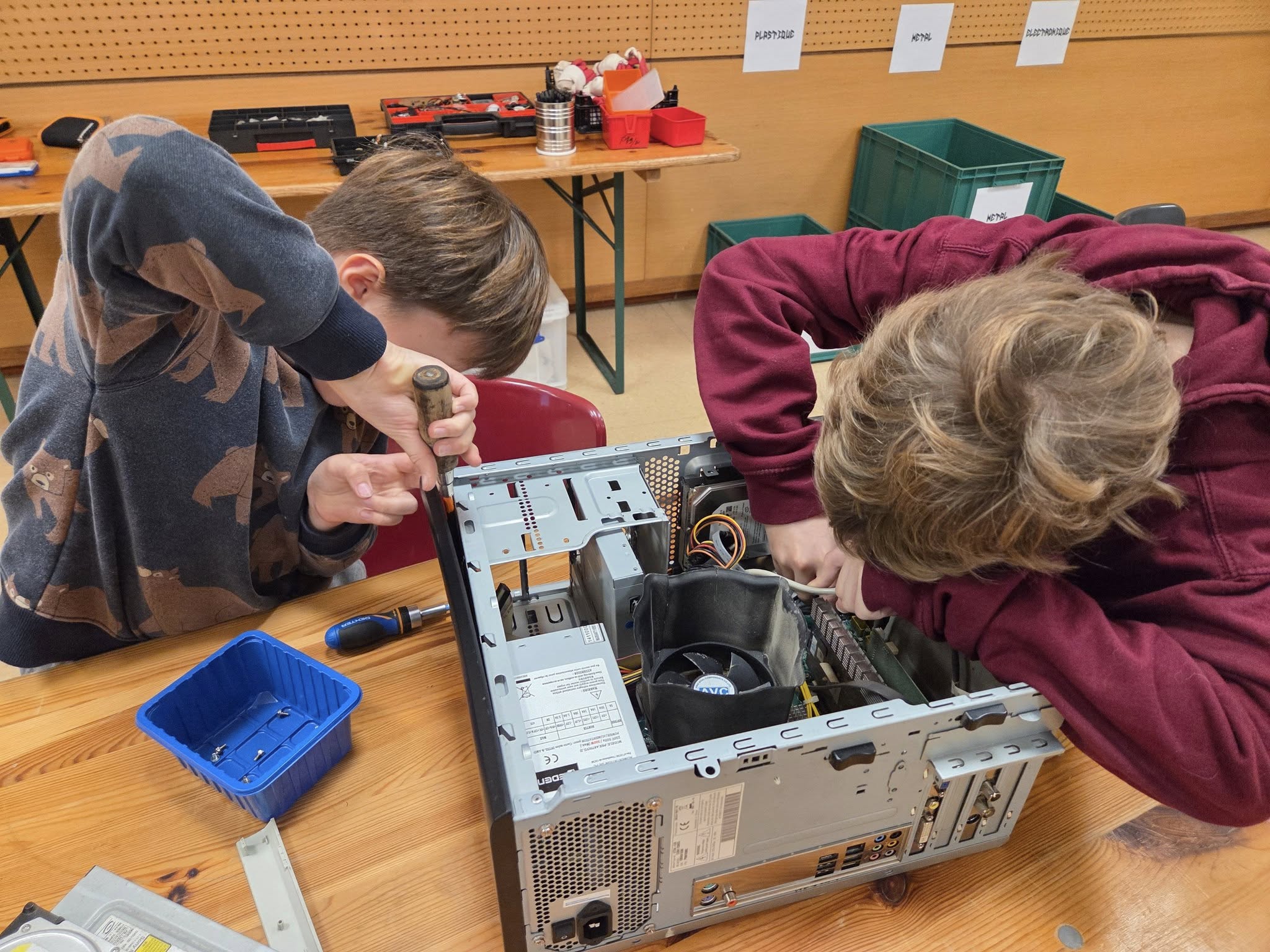 Aujourd’hui, notre classe de CM1-CM2 a participé à une animation passionnante autour des déchets électriques et électroniques (DEEE) !