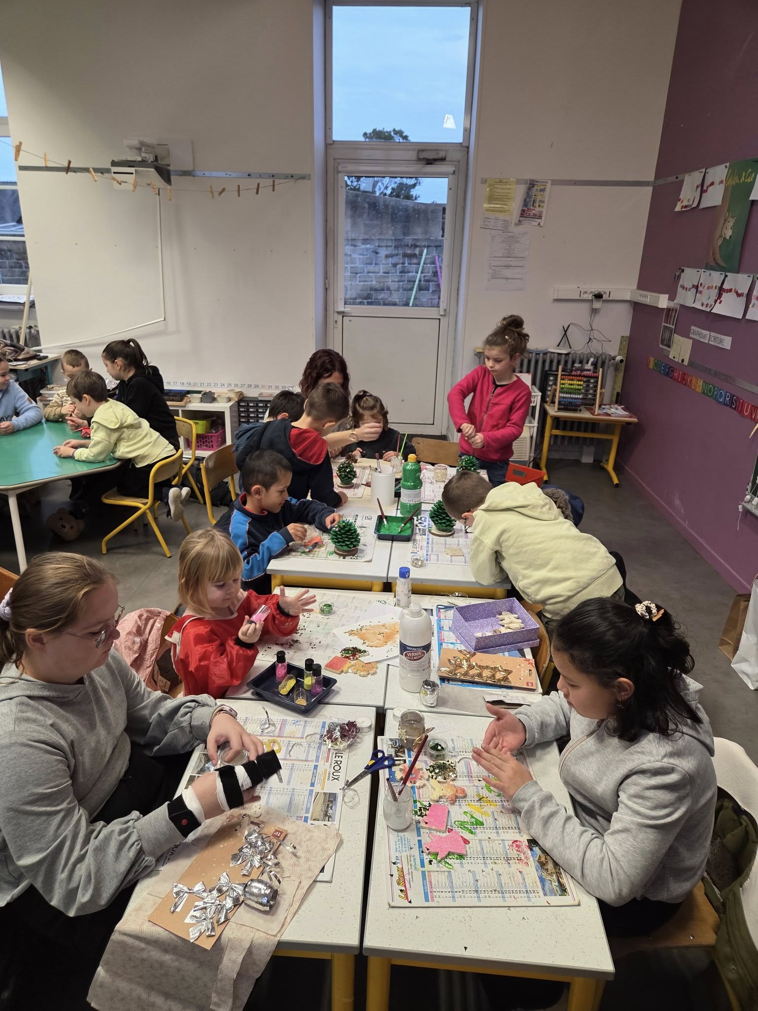 De la Petite Section au CM2, les élèves étaient réunis en groupes mélangés pour créer de superbes décorations pour le marché de Noël 🎁🎨