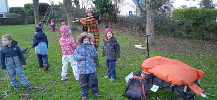 🐦 Séance 7 : direction le bois à la découverte des oiseaux de nos jardins et de leurs chants 🎶. Écriture avec une plume, jeux dans le ruisseau, parcours à l’aveugle et écoute des sons de la nature 🌳