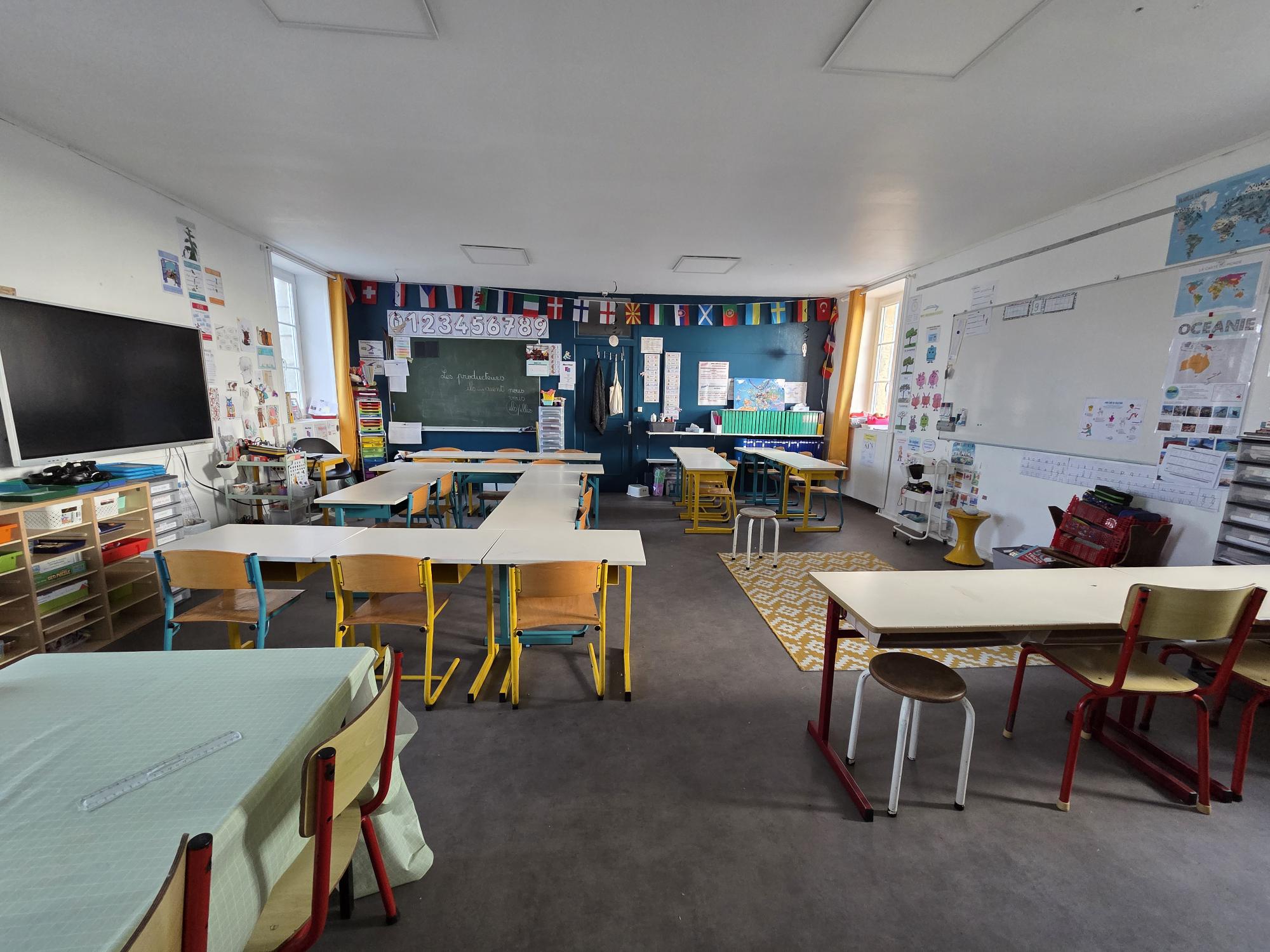 Infrastructures Nous vous invitons à découvrir ci-dessous l'univers quotidien de vos enfants ! Classe des PS-MS Classe des GS-CP-CE1 Classe des CE2-CM1-CM2 Entrée de l'école La cour des Primaires La cour des Maternelles La salle de motricité Bibliothèque de l'école Salle d'arts Le préau